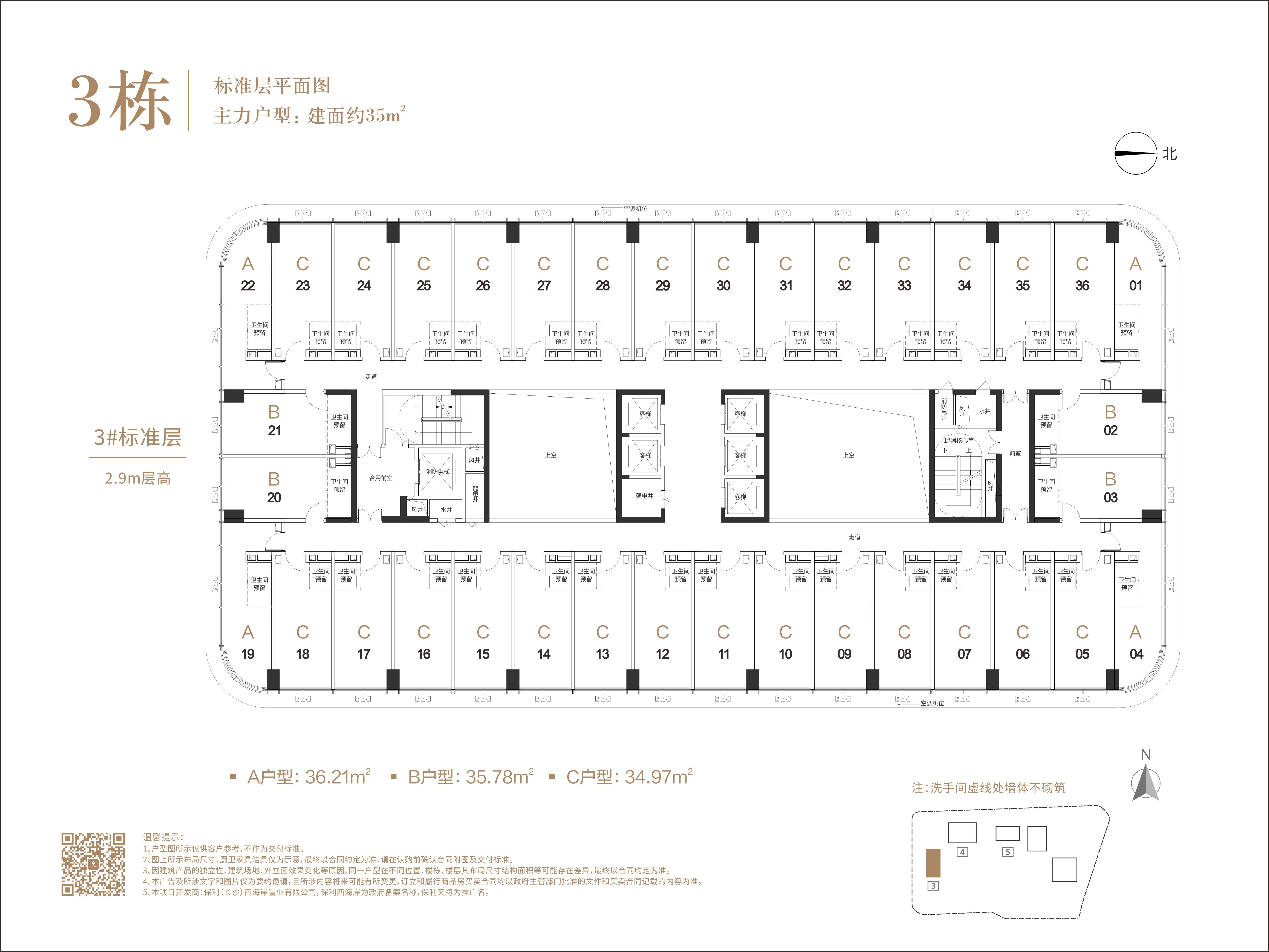 • 户型名称:3号栋-1室1厅1卫-35.0㎡