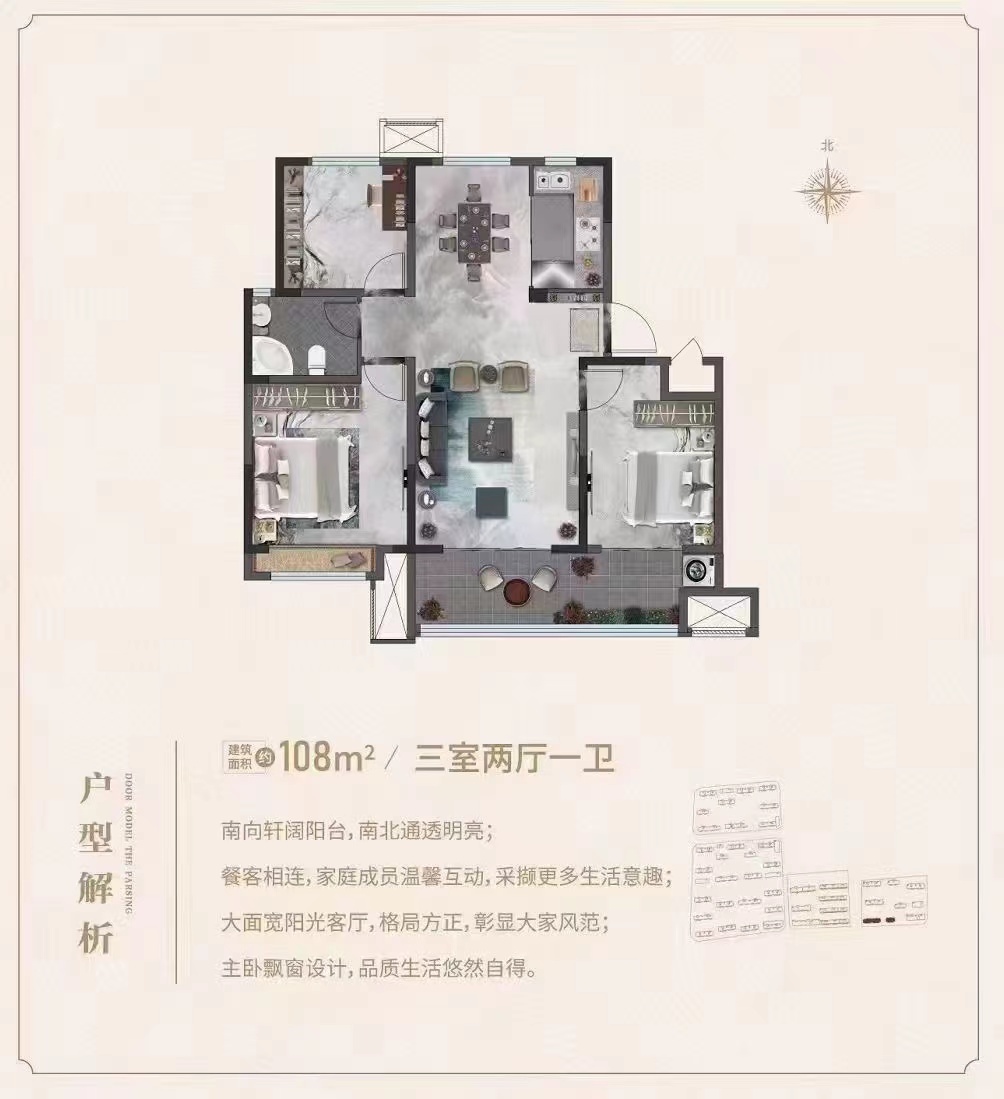 楼栋:C5-8# 面积:108㎡ 总高:11层 户型:三室两厅一卫 梯户:2个单元1梯2户 公摊:18.92% 交付标准:毛坯 价格:待定