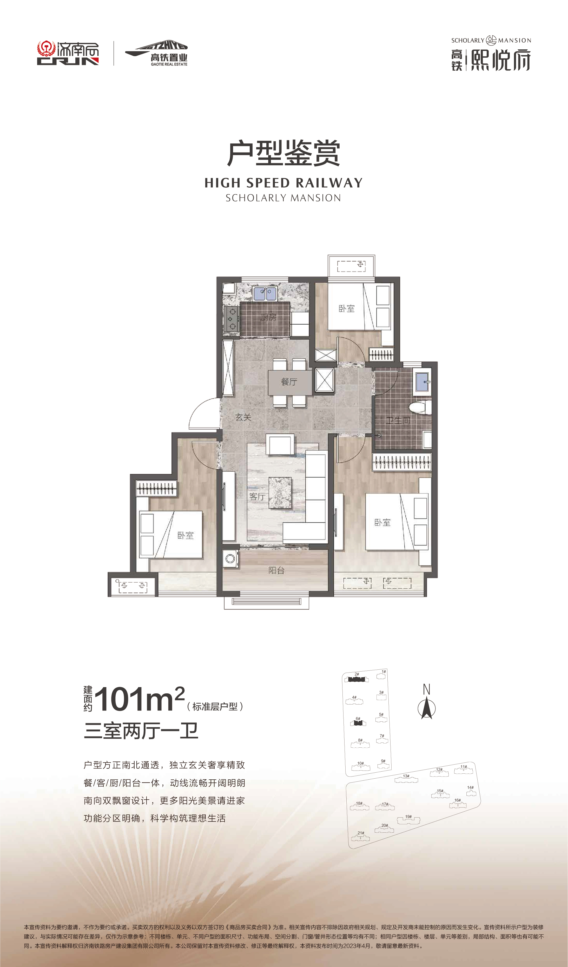高铁熙悦府3室2厅1厨1卫 总价待定