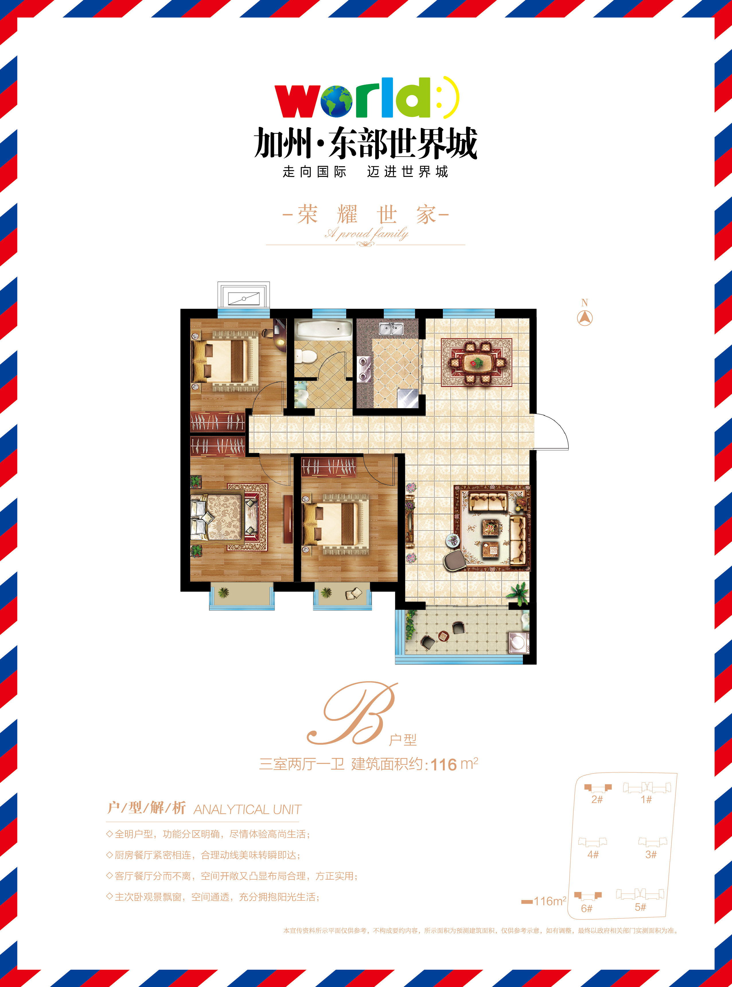 加州集团,始终秉持“上善生活倡导者”的品牌理念,六载深耕,匠心筑家,缔造美好人居生活。恢弘大城,已然屹立于东城之上! 山师优教资源 享9年一贯制教育 签约山东师大教育集团,近享山东师范大学加州世界城实验小学、济南市历城区虞山路学校(中学部),全龄段优质教育体系,护航孩子美好未来。 尊崇物业服务 呈现高品质幸福生活 加州物业始终秉承“让生活更美好”的服务理念,全天24小时管家式服务,为业主幸福生活保驾护航。 用匠心筑就美好人居 约62.5米宽阔楼间距,保障最大化的景观视野和居住私密性;采用法式建筑风格,外立面暖色调干挂石材,精装公共区域大堂,合理归家动线。 繁华商业配套 一站式生活体验 紧邻B5地块商业街(在建中),下楼即享风情商业集群,全维商业配套,以繁华同步世界生活;引领城市精致多元的生活方式,带给更多人美好消费体验。