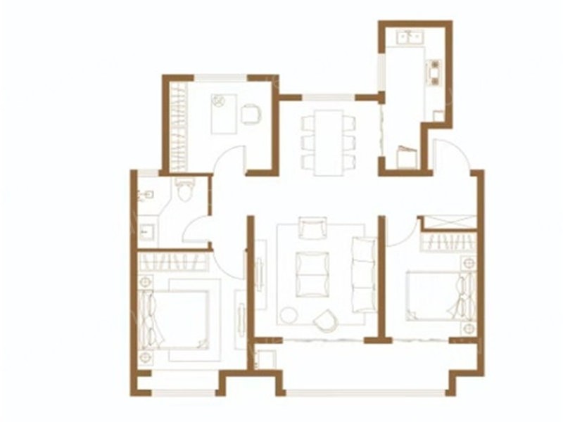 B2户型, 3室2厅1卫1厨, 建筑面积约110.00平米