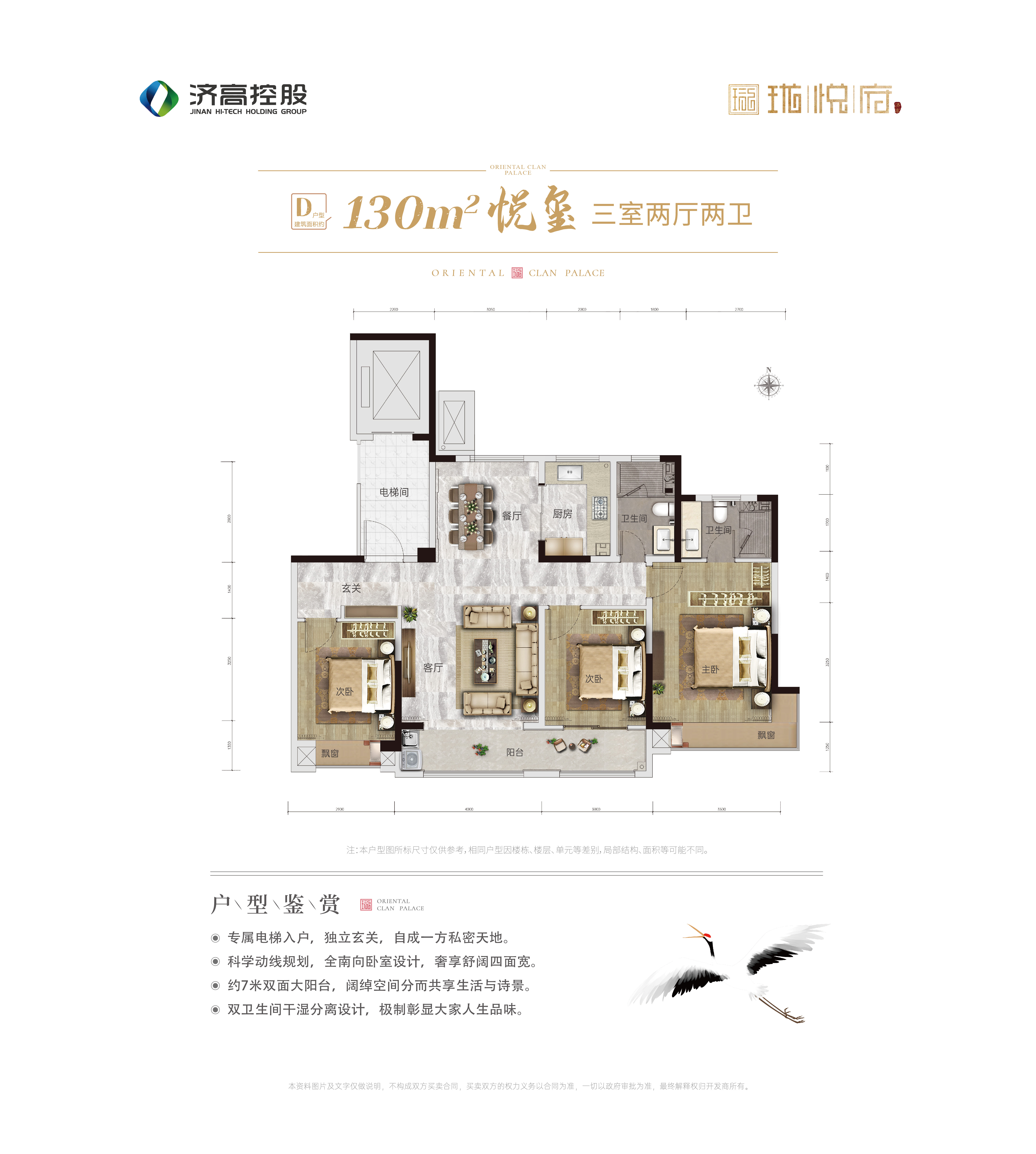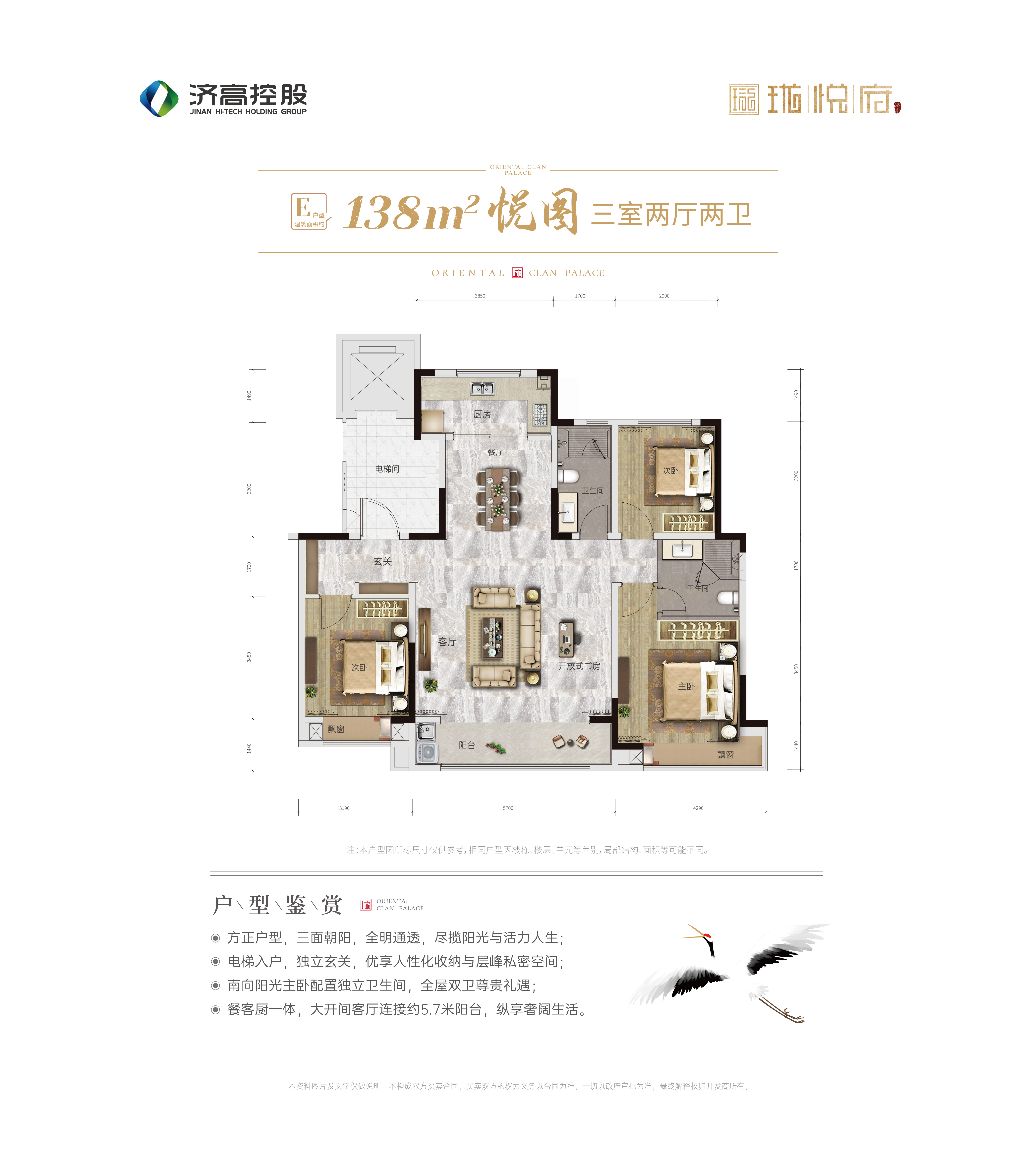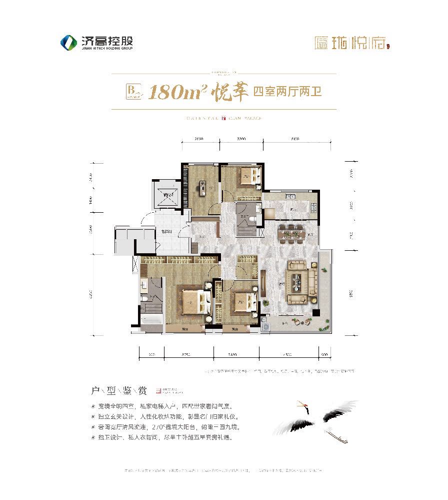 建面约180㎡ 悦萃 四室两厅两卫 约13.6米大面宽,南向四开间,清风阳光流连 LDK一体设计,约9米奢阔直厅,际会层峰生活 全景巨幕落地窗,奢享约12米270°大阳台 约35㎡奢阔主卧,尊享难得朝阳卫生间与奢阔衣帽间