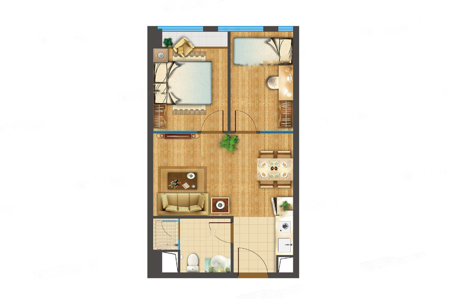 各个空间户型方正,后期空间利用率高;南北不通透的户型,后期居住时常开门通风换气即可;卫生间没有对外窗户,可通过加装排风机改善通风除湿;从卧室进卫生间需要穿过餐厅或客厅;卧室门朝向客厅或餐厅;各个功能区的尺寸比例规范,布局合理,能很好地满足日常功能需求,整体空间开阔,采光充足,居住舒适度好;公摊高于1