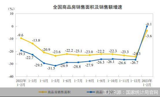 3月15日,国家统计局发布2023年1—2月份全国房地产开发、销售的相关数据,尽管投资、销售、资金三大数据同比依然为负,但下降幅度均有所收窄,特别是商品房销售额,从上个月同比下降26.7%,反弹至同比下降0.1%;房地产开发企业到位资金从上个月同比下降25.9%,反弹至同比下降15.2%。在市场普遍认可“小阳春已至”的同时,对于这种反弹能够持续多久,目前分歧较大。