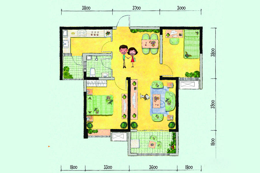 各个空间户型方正,后期空间利用率高;南北不通透的户型,后期居住时常开门通风换气即可;整个户型空间布局合理,做到了干湿分离、动静分离,方便后期生活;客厅、卧室、卫生间和厨房等主要功能间的尺寸以及比例适中,有利于采光和通风,居住起来舒适、方便;公摊高于15%且低于25%,符合住宅公摊正常范围。