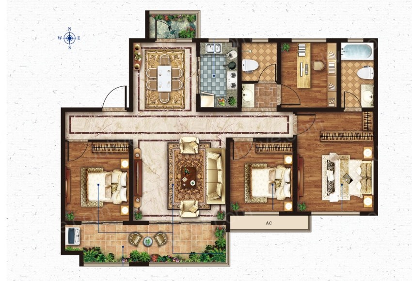 • 户型名称:4室2厅1厨2卫艺墅C户型