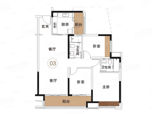 玄关:入户独特玄关柜,充分利用每一寸空间,小细节大品质 客厅:阔绰客厅设计,外接超大阳台,连通空间价值 卫生间:双卫设计,干湿分离,生活更加舒适 3#, 1#, 4#, 2#