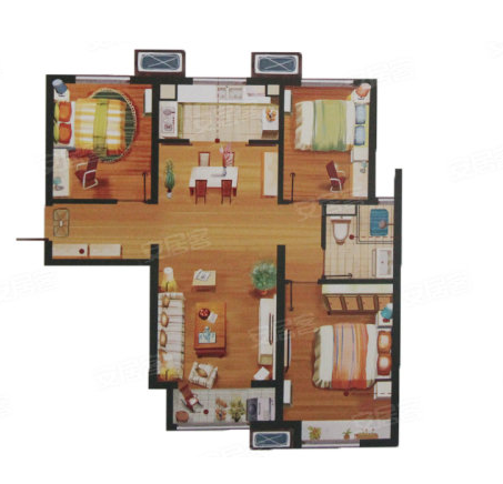 客厅:客厅餐厅相连,布局方正南北通透 卧室:主卧朝阳设计,配备独立卫生间及衣柜 阳台:观景大阳台与客厅相连,居家会客尽览窗外景色